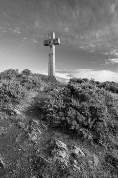 Growing in the area were gnarled Hawthorn trees of great age and further to the tip of the headland there were wonderful views in both directions. Also a huge stone cross erected in 1896 as a navigational aid which also made for a good image. To the left and right cliffs covered in bracken, gorse and grass. The bracken had turned a rusty orange colour and the hurrying clouds over formed a pleasant panorama. It was by now approaching 11am and the light was harsh, so after a few more images, I turned and made my way back. But just before I went there was another surprise. A Peregrine Falcon arrived from nowhere hovering, then swooping, looking for prey. Then it was gone again. Sorry no images, I am no bird photographer, but it is always fantastic to see these wonderful creatures. On the way back