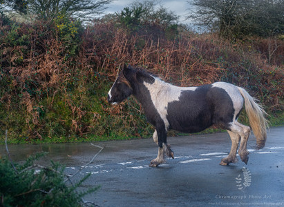 So I set off with waterproofs, warm clothes, hat, gloves hot coffee, food and all my camera gear. I even brought the Intrepid 4x5, although I suspected that it would not be good for the windy conditions. My plan was simple: No plan (also the best plan) in other words to just explore until I found some potential present, or future compositions. Conditions were; Bleak, Brutal or Exhilarating (delete as required) with the temperature at 2-3 Centigrade and the aforementioned Brisk Northerly wind along with intermittent sleety showers. It was therefore not a day for long moorland walks, although the nearby Ponies were taking things in their stride. Even they were staying close to shelter, so I did the same. I was fascinated. by the twisted, mossy, lichen covered Oak trees lining the road so I lined up some shots. The light was a touch on the harsh side, so I mostly concentrated on details with the thought in mind of coming back.